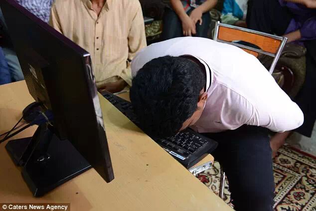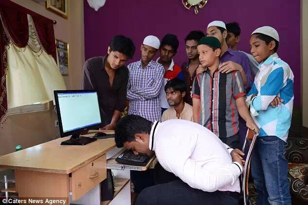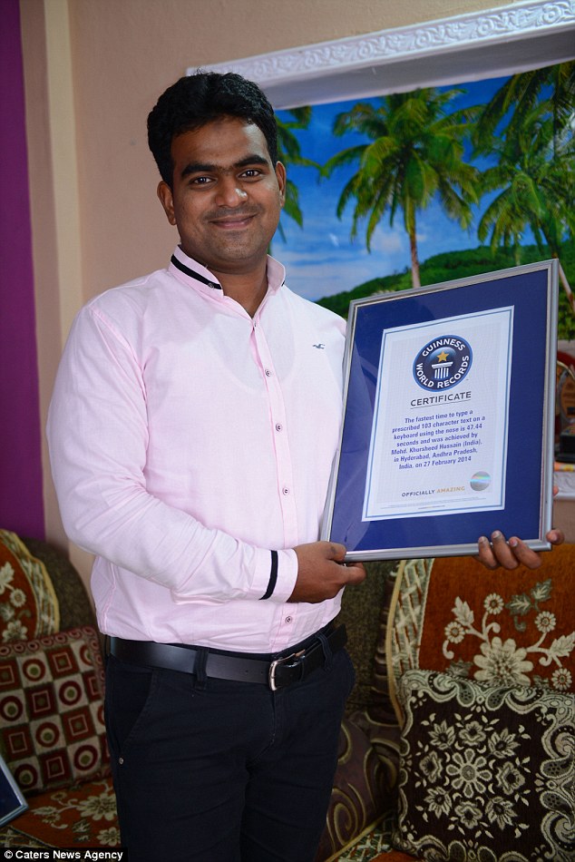 Mohammed Khursheed Hussain, 23, typed out a 103 word sentence on the keyboard using just his nose.
