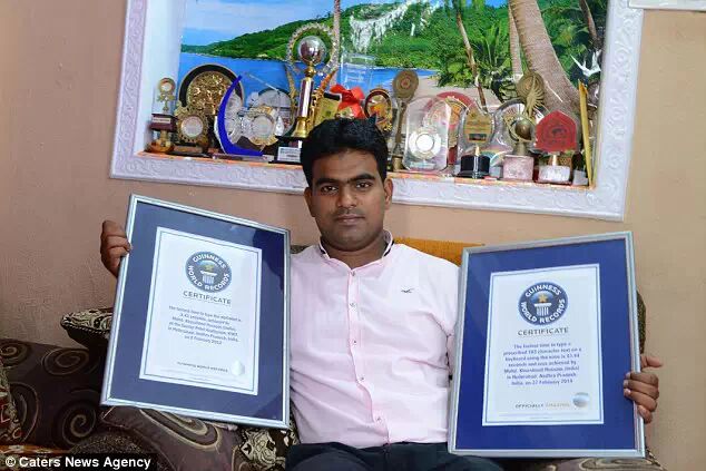 He also holds the record for typing alphabet in 3.43 secs using his fingers.